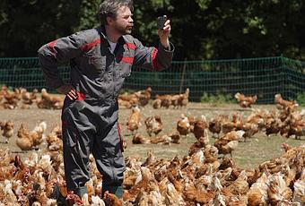 " Toujours accompagné de sa fidèle poule Roxane, Raymond, petit producteur d’œufs bio en centre Bretagne a un secret bien gardé pour rendre ses poules heureuses : leur déclamer les tirades de Cyrano de Bergerac. Mais face à la pression et aux prix imbattables des grands concurrents industriels, sa petite exploitation est menacée. Il va avoir une idée aussi folle qu'incroyable pour tenter de sauver sa ferme, sa famille et son couple : faire le buzz sur Internet. "